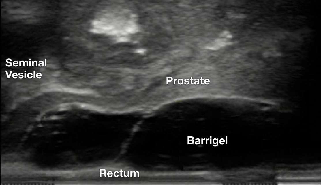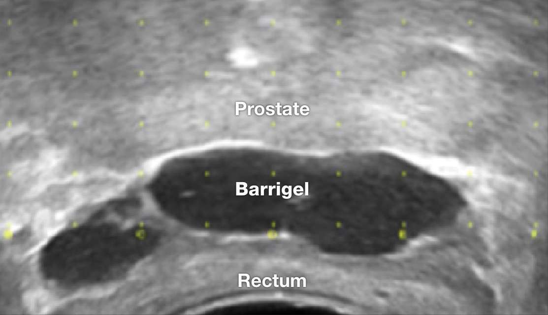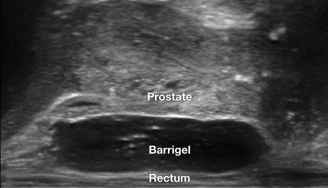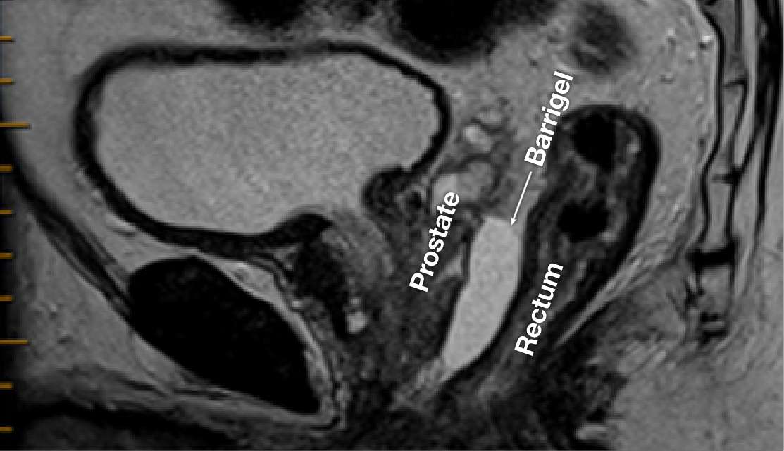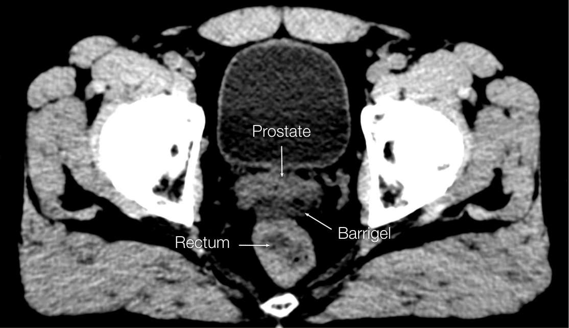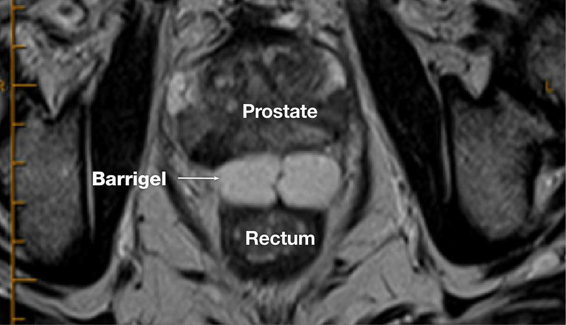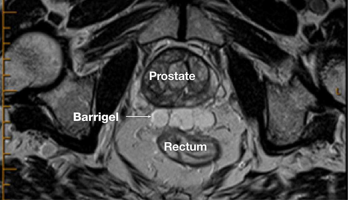 View images of Barrigel on MR and CT, as well as procedural images on transrectal ultrasound (TRUS).
