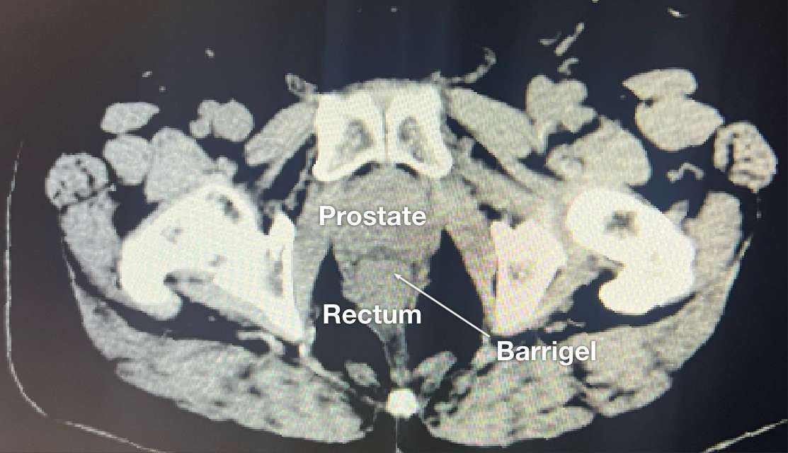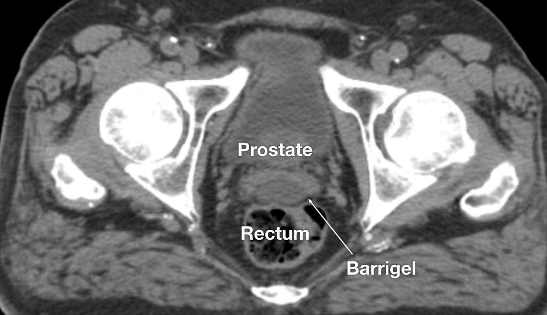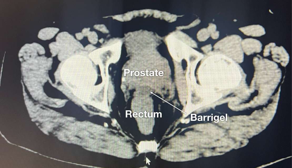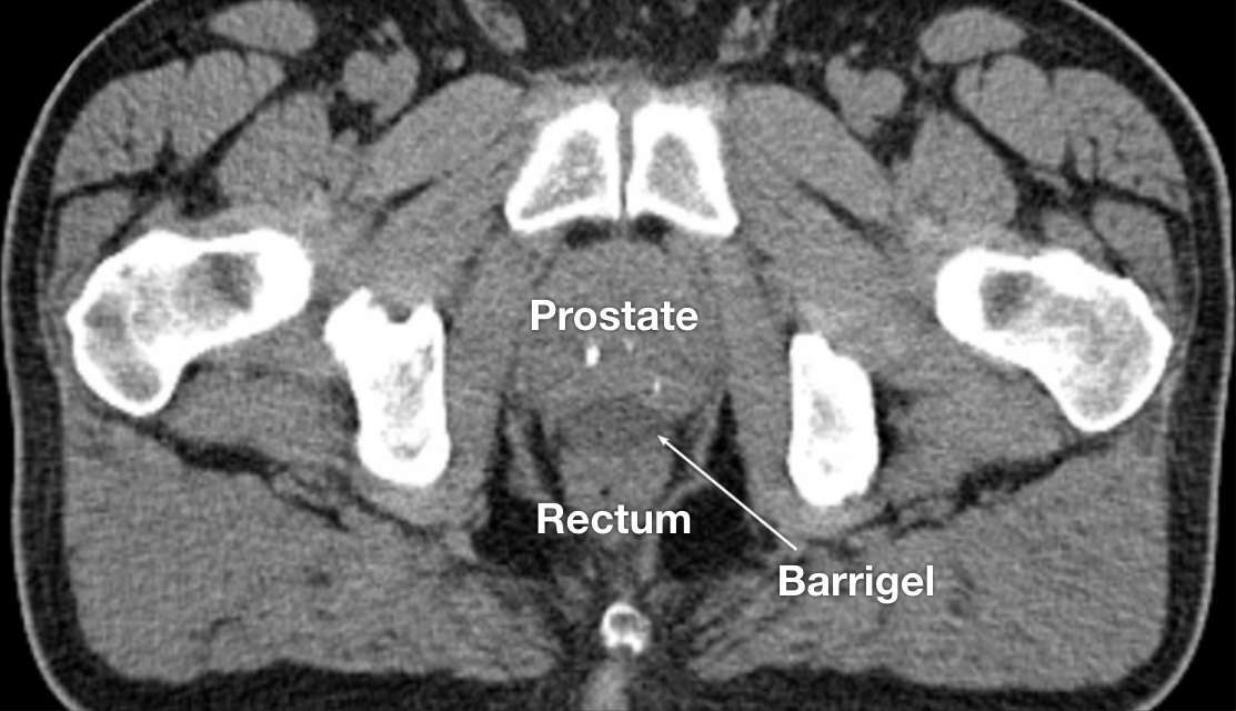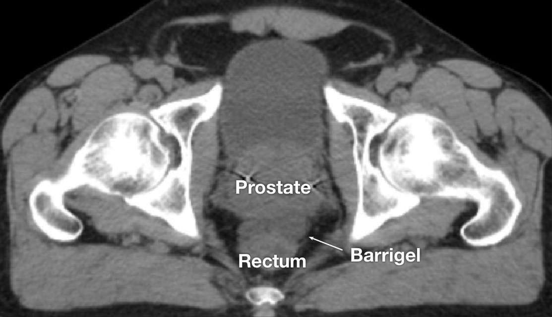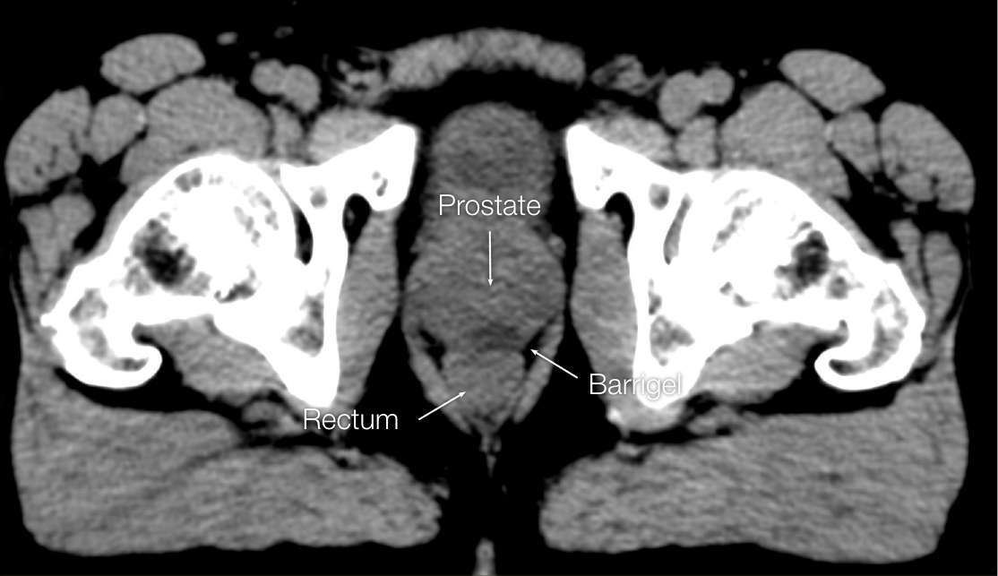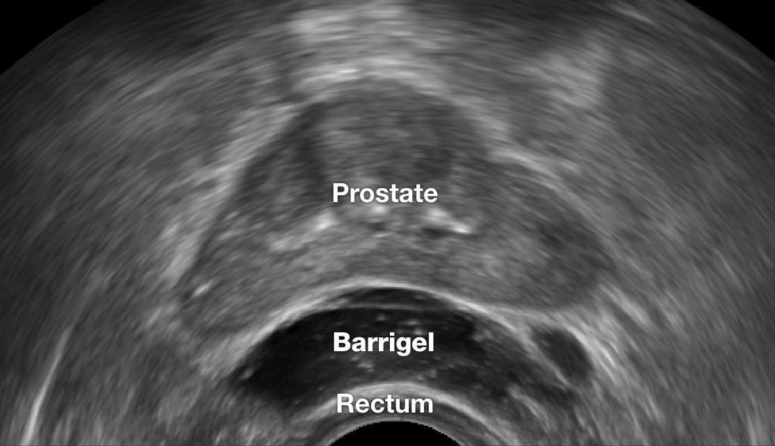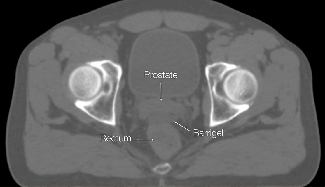 View images of Barrigel on MR and CT, as well as procedural images on transrectal ultrasound (TRUS).
